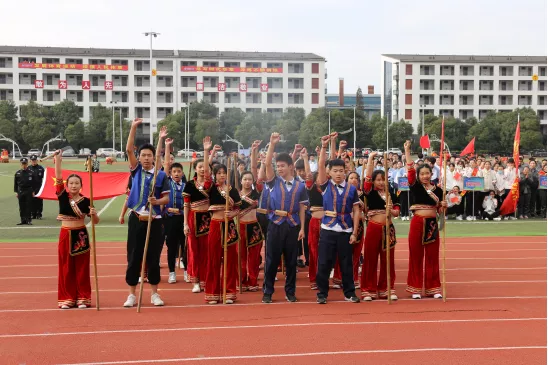 主席台和各代表队步队掌声和欢呼声不绝。
